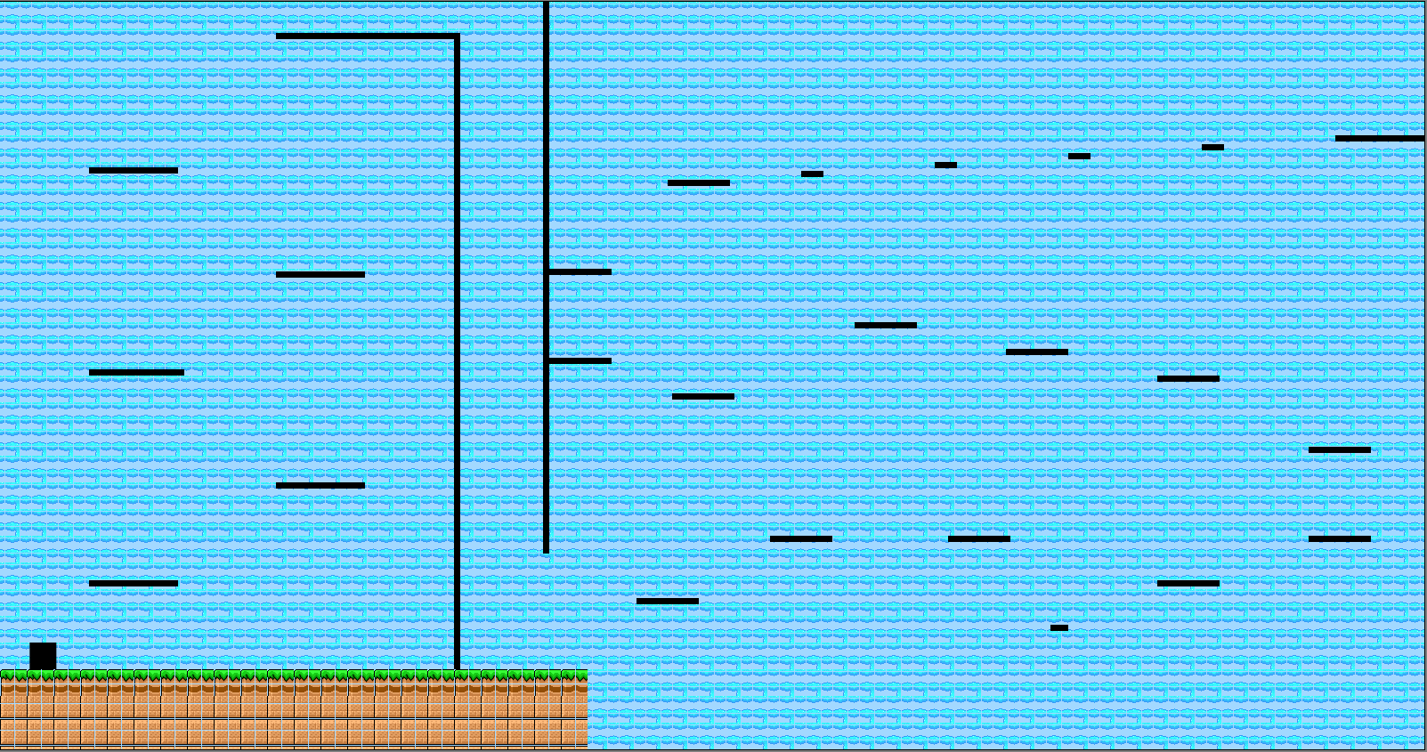 Ürsprünglich war gedacht, dass sich die Welt mit der Spielfigur bewegt, da mir die Umsetzung allerdings nicht gelang, griff ich auf die Option zurück die ganze Welt statisch auf einer Seite zu erstellen. Da mir diese Variante nicht so gut gefiel wie eine dynamische Welt, verlor ich zu viel Zeit diesem Feature nachzujagen, diese verlorene Zeit hätte ich sicherlich sinnvoller verwenden können.
